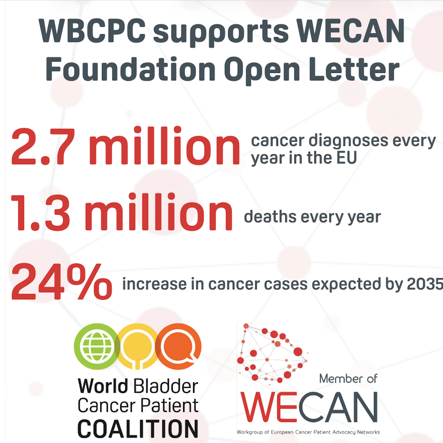 The World Bladder Cancer Patient Coalition (WBCPC) has co-signed the WECAN Foundation Open Letter, “Cancer Cannot Wait: Safeguard Health as a Standalone Priority in the EU Budget” joining patient organisations, healthcare professionals, researchers, and civil society groups across Europe in calling on Members of the European Parliament (MEPs) to protect health funding in the next EU Budget.